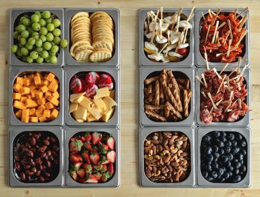 Tomatoes, Kalamata Olives, Castelvantrano Olives, Blueberries, Strawberries, Raspberries, Blackberries, Oranges, Dried Apricots, Dried Apple, Grapes, Carrot Sticks, Peaches, Figs, Caper Berries, Pickled Onion